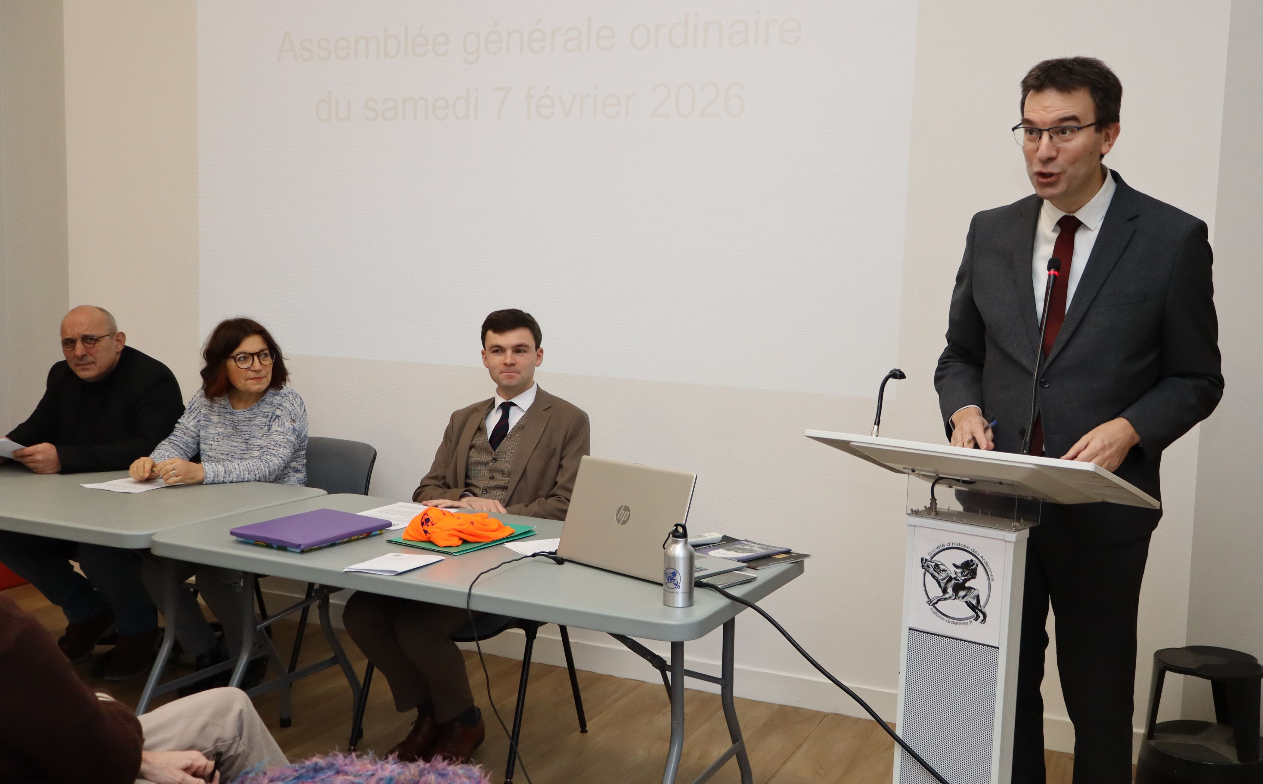 La Société d’histoire des Ardennes s’est réunie en assemblée générale ordinaire le samedi 7 février dernier à 10 heures aux archives départementales des Ardennes, siège social de l’association depuis sa fondation. L’occasion pour son président, Florent Simonet, entouré de son conseil d’administration et des adhérents de notre société présents, de réaliser le bilan de l’année 2025 et d’ouvrir les perspectives pour la nouvelle année déjà débutée.
